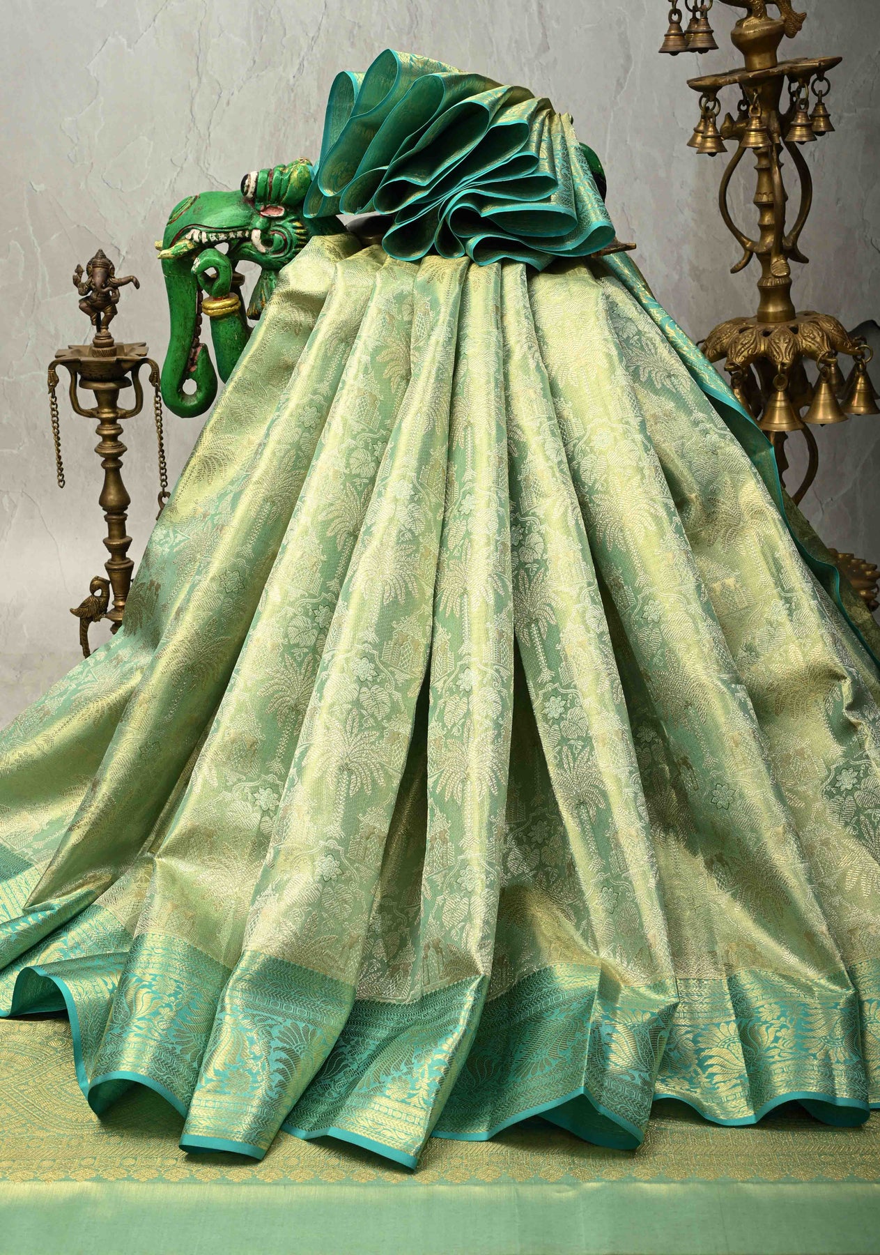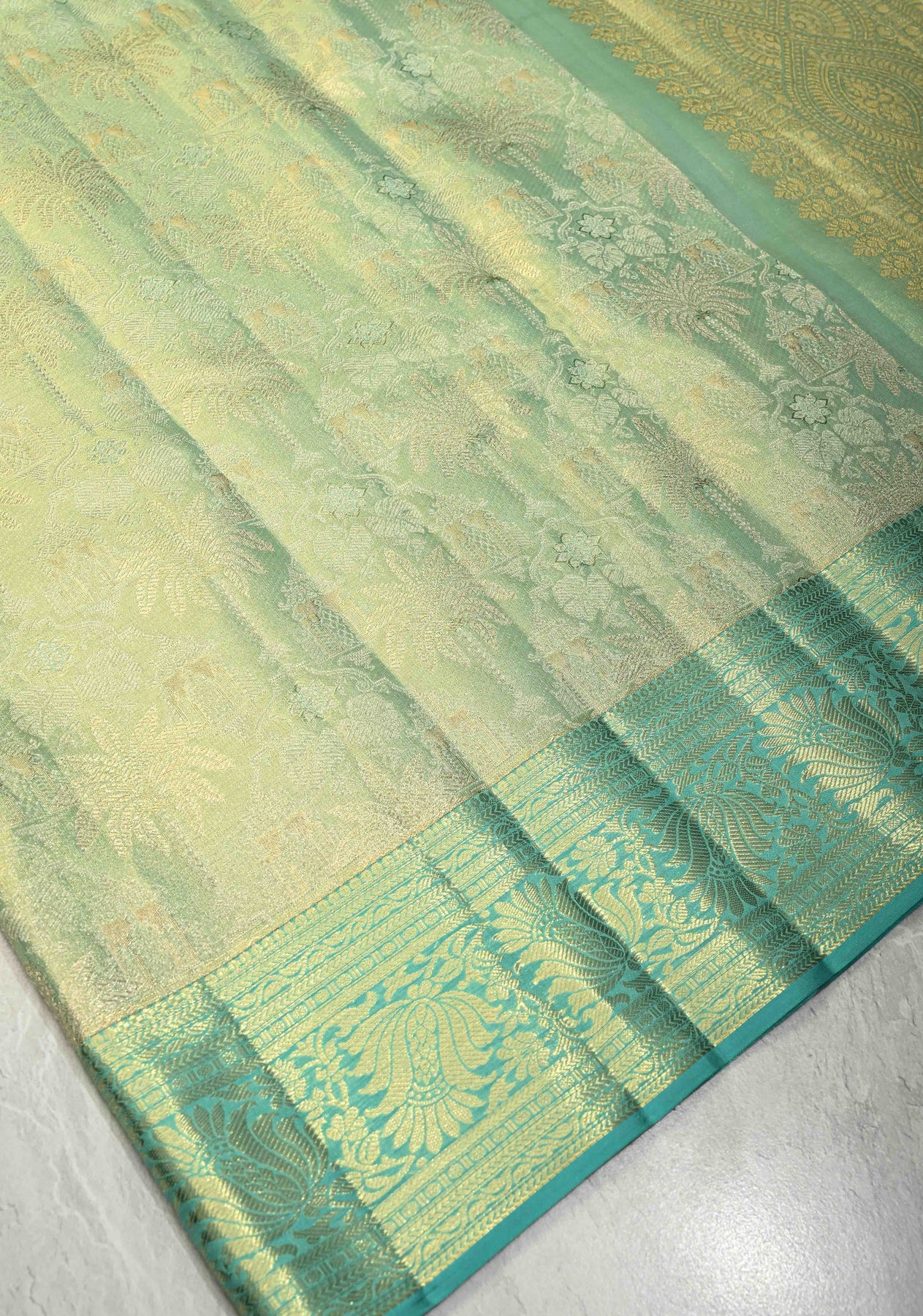 Pista Green Dual Tone Tissue Kanjivaram Pure Silk Saree with Meenakari  Brocade and Zari Border | SILK MARK CERTIFIED