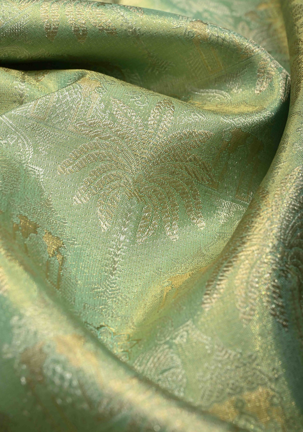 Pista Green Dual Tone Tissue Kanjivaram Pure Silk Saree with Meenakari Brocade and Zari Border | SILK MARK CERTIFIED