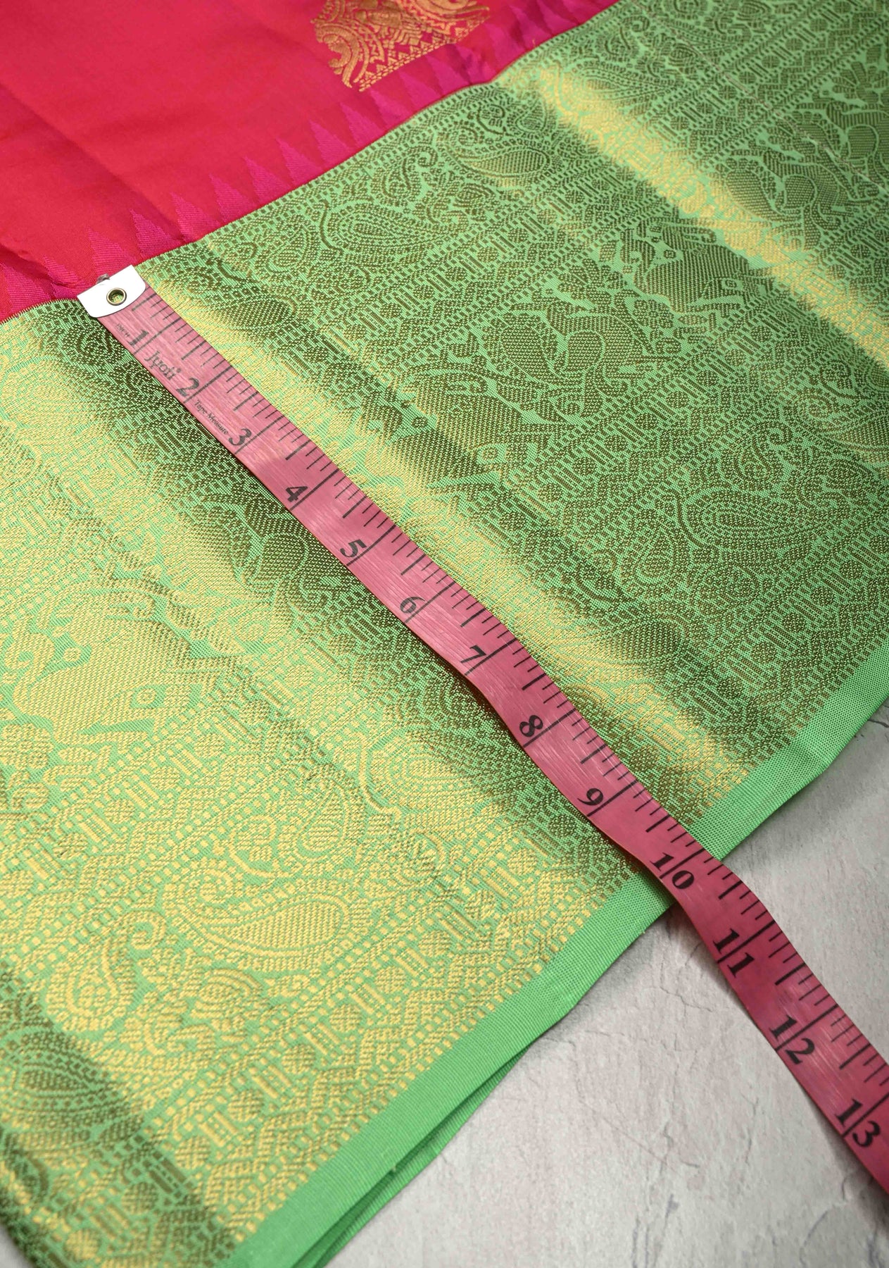 Rani Pink Kanjivaram Pure Silk Saree with Ganda Berunda Zari Buttas and Contrast Wide Zari Border | SILK MARK CERTIFIED