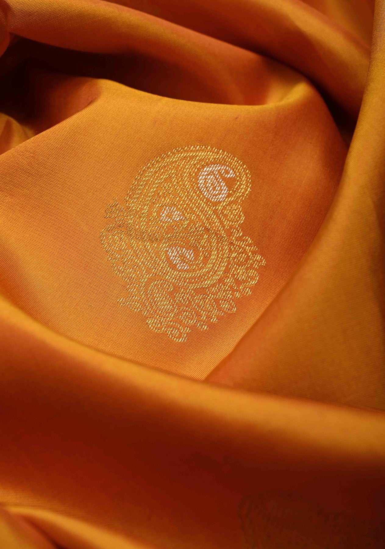 Yellow mustard Kanjivaram Pure Silk Saree with Meenakari Zari Buttas and Contrast Wide Zari Border | SILK MARK CERTIFIED