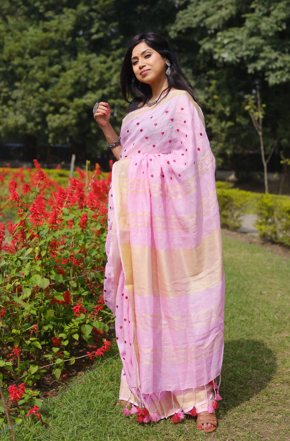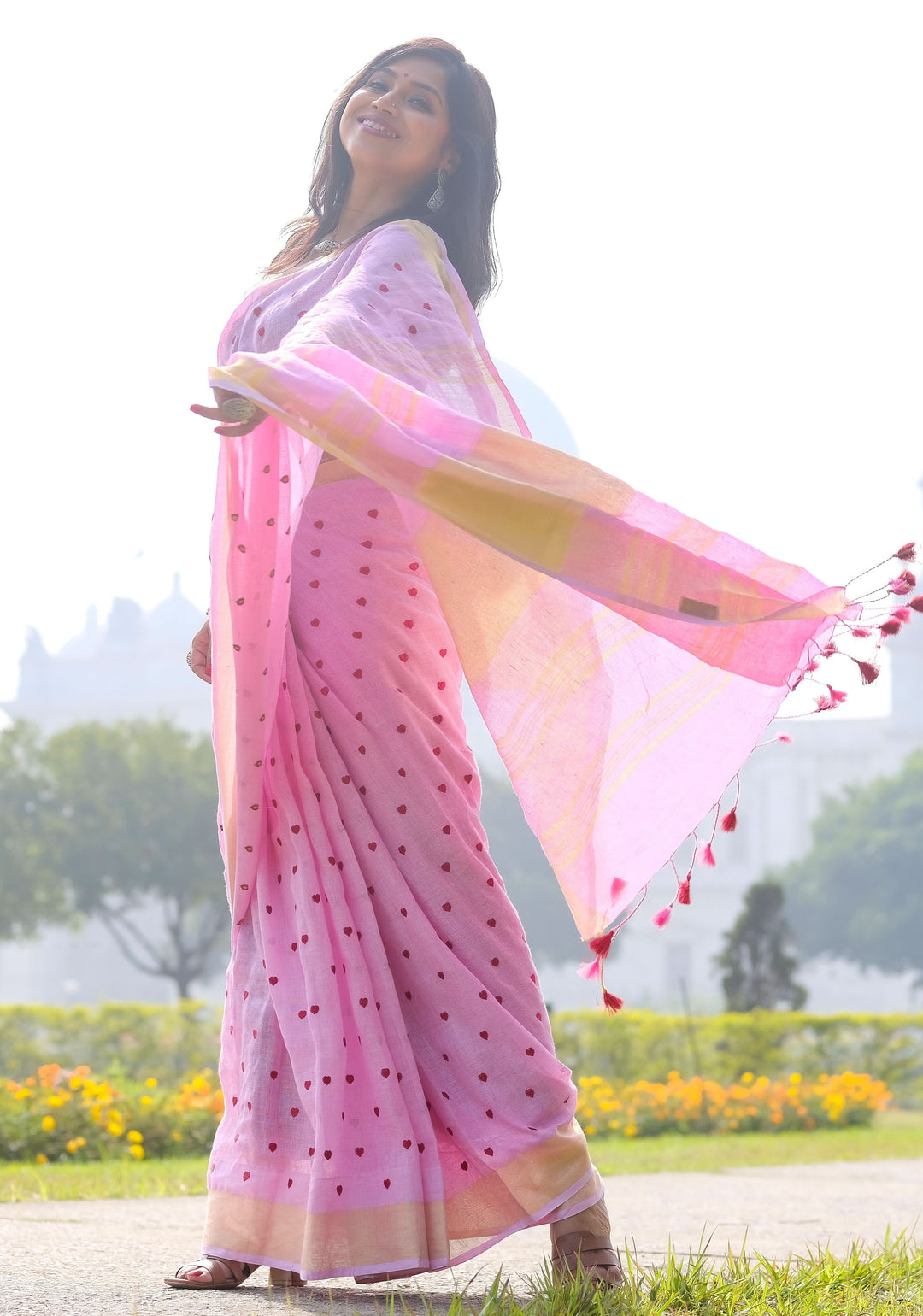 Valentine Pink Sarees: Simple, soft, and stunning—they’re ideal for daytime elegance.