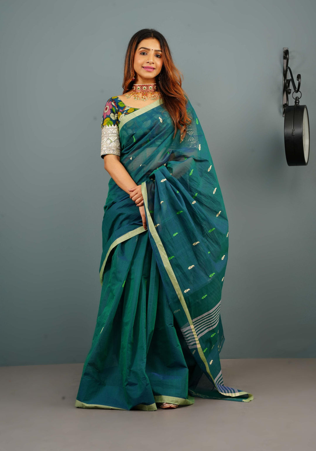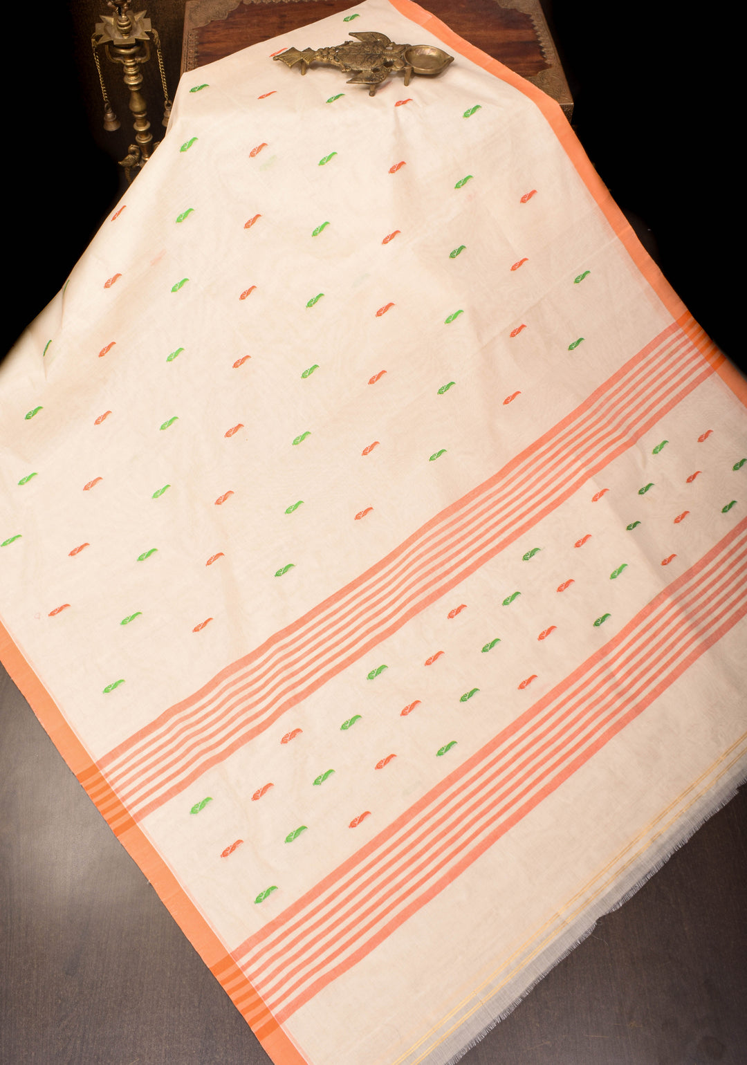 The sheen and feel of the Vegan silk (or Banana Silk) saree is very similar to pure silk and is quite easy to carry too. The weavers take great pains to make the sarees long-lasting.