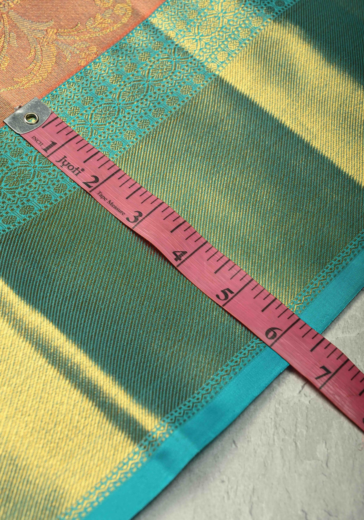Salmon Pink Kanjivaram Tissue Silk Saree with Meenakari Floral Jaal and Contrast Zari Border | SILK MARK CERTIFIED