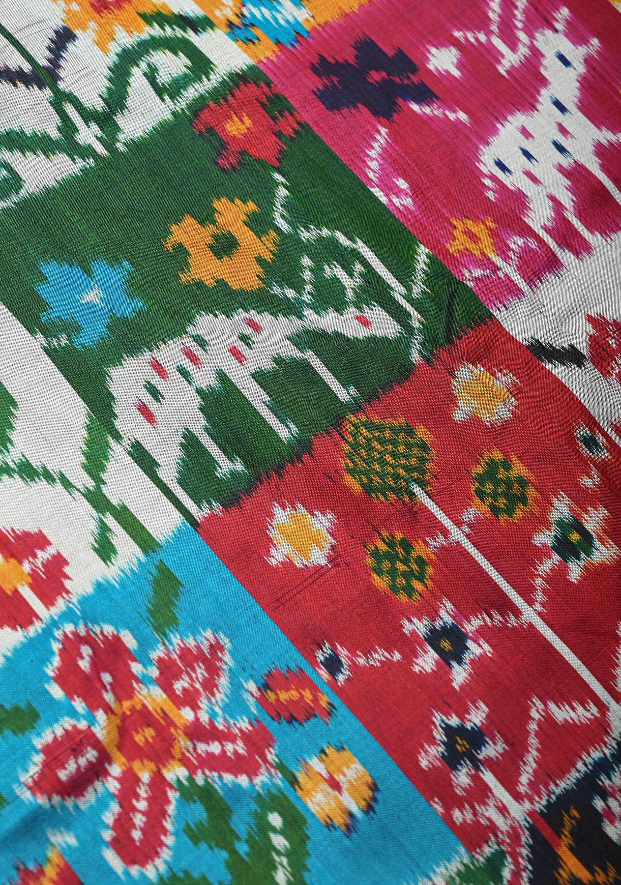 The smooth, lustrous pure silk enhances the vivid multicolor palette, making this saree a showstopper for weddings, festive occasions, and cultural celebrations. Elegant, artistic, and timeless—this Rangkaat Pochampally saree is a treasured addition to any ethnic wardrobe.