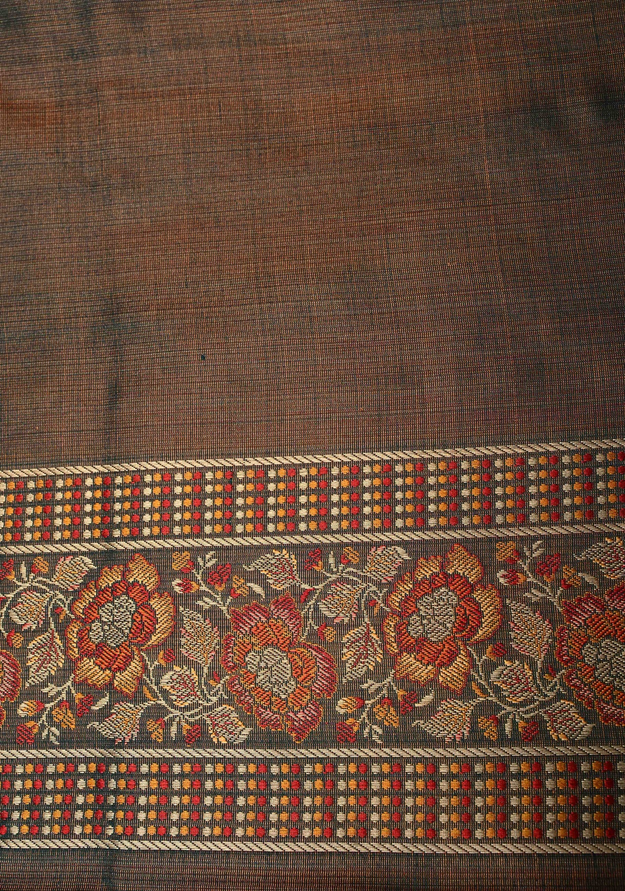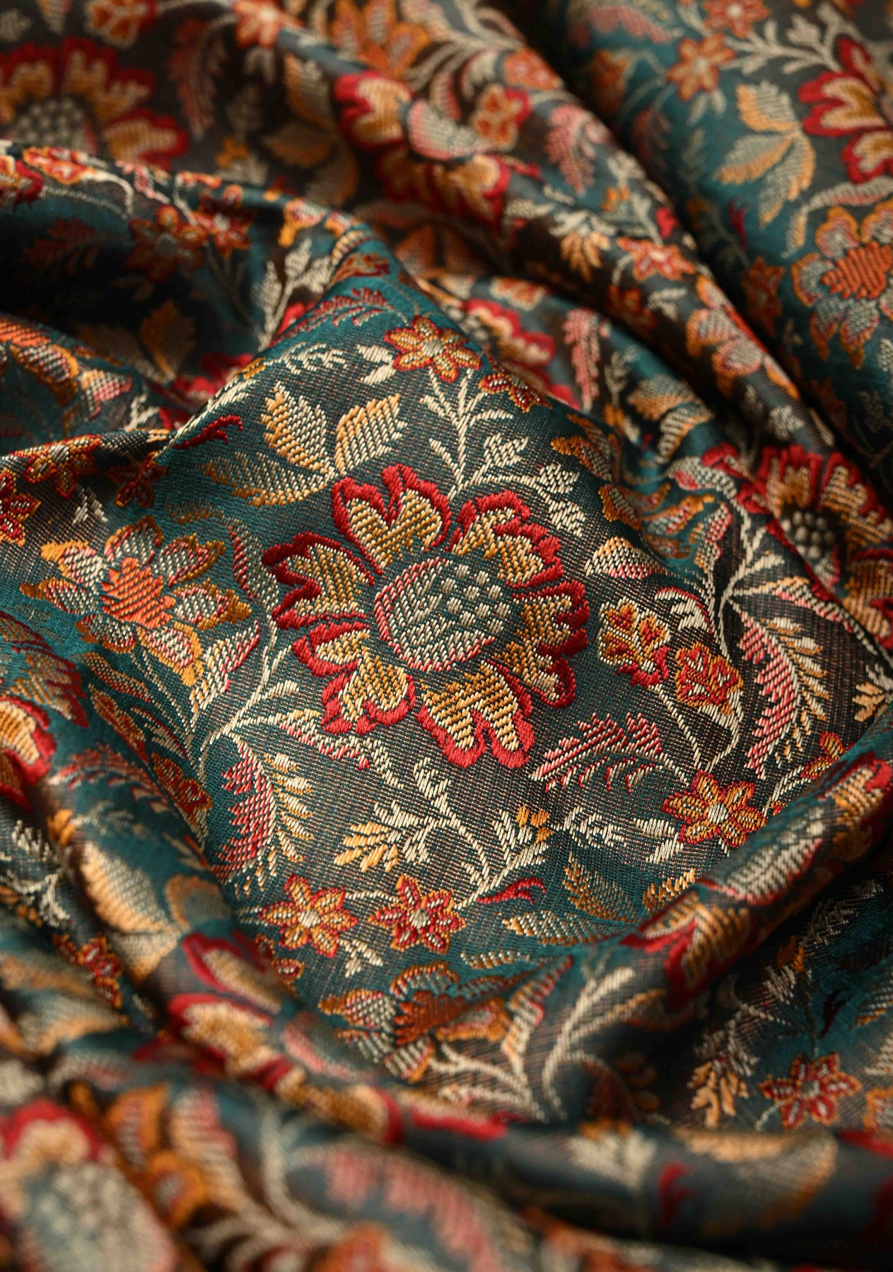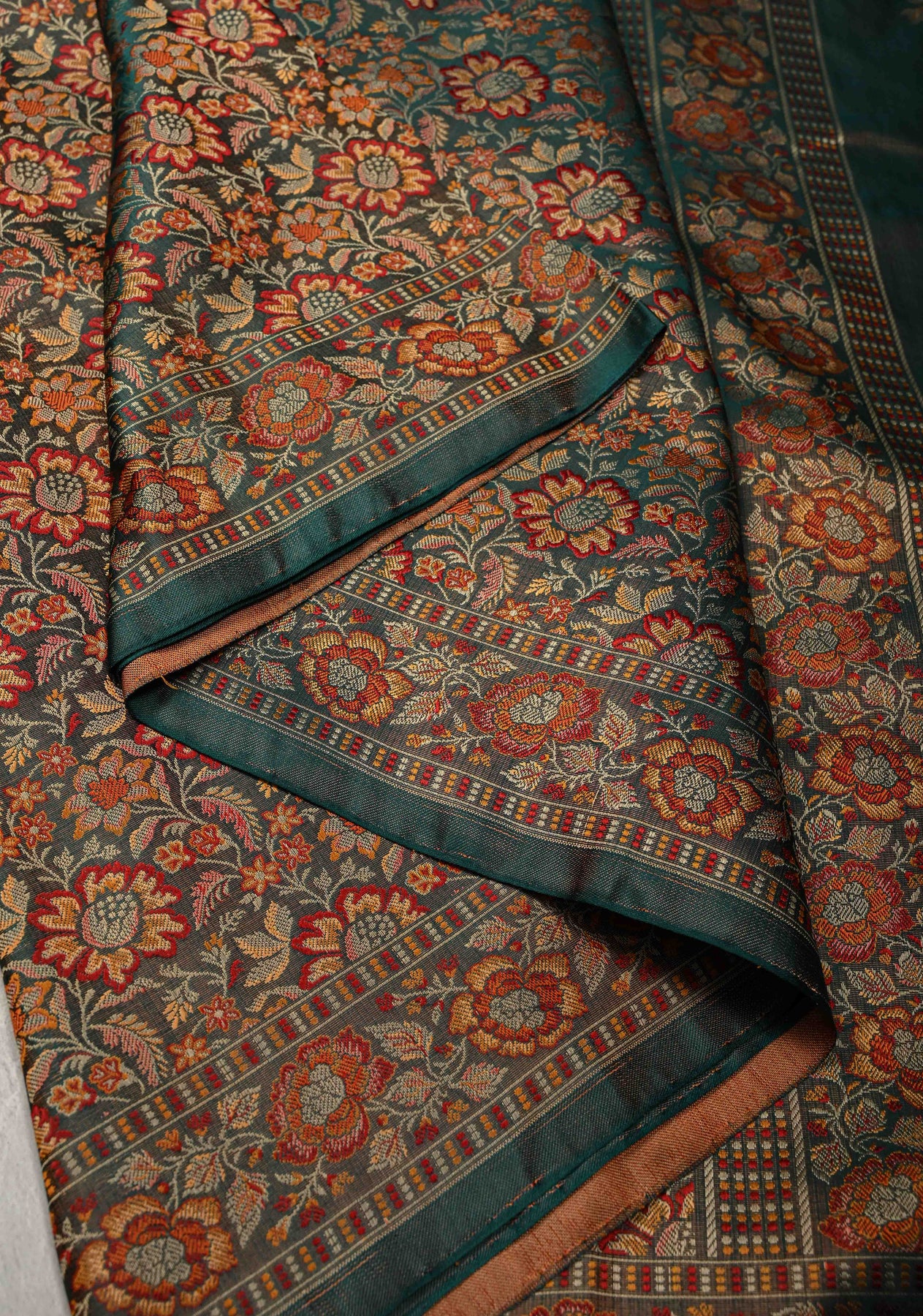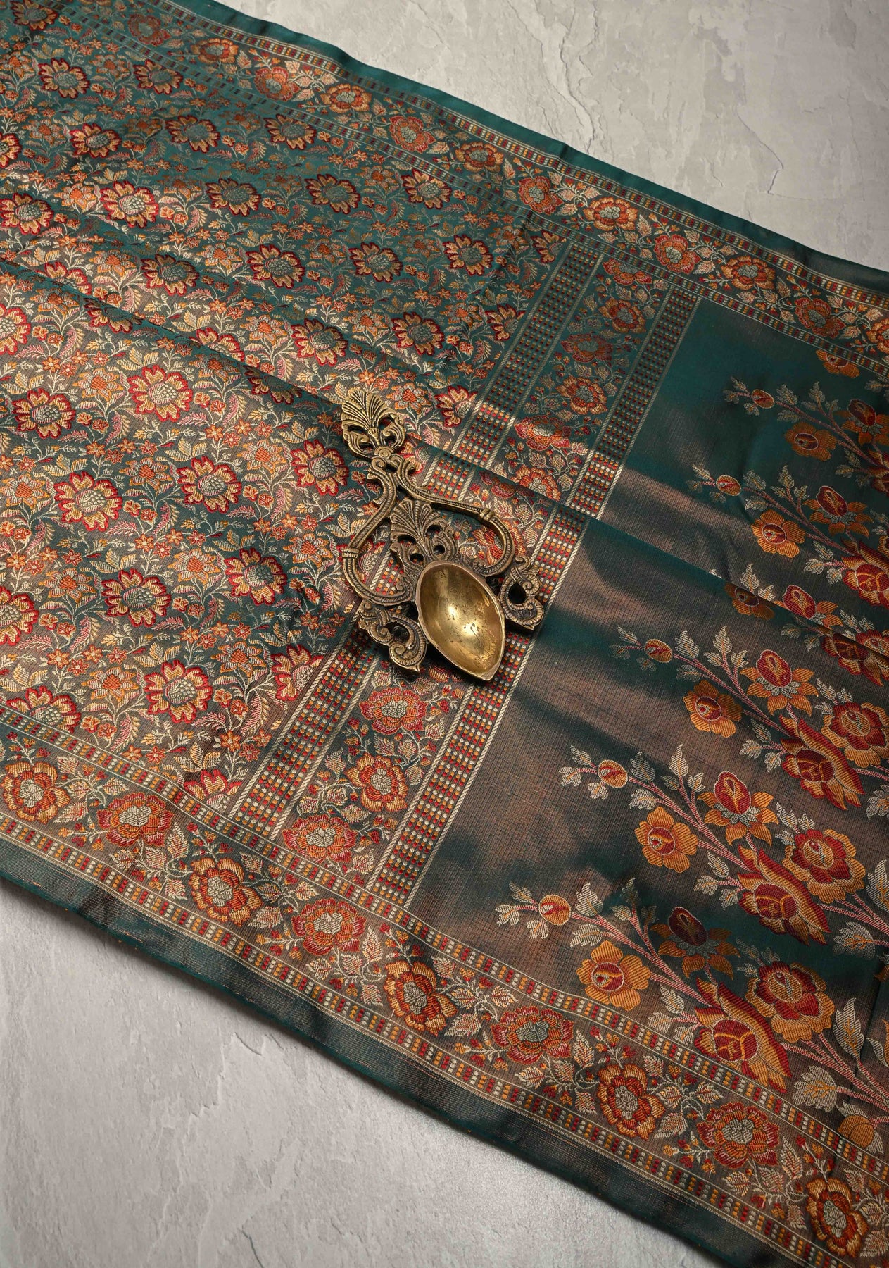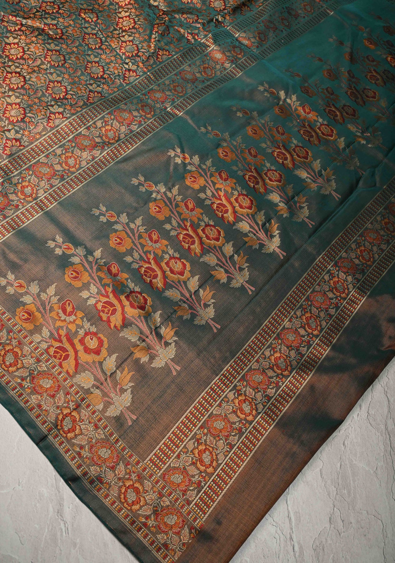Grace meets tradition in this exquisite Green Tanchoi Banarasi Satin Silk Saree, a fine example of Banarasi craftsmanship. Woven in premium satin silk, the saree has a soft, lustrous finish that drapes beautifully with a natural sheen.