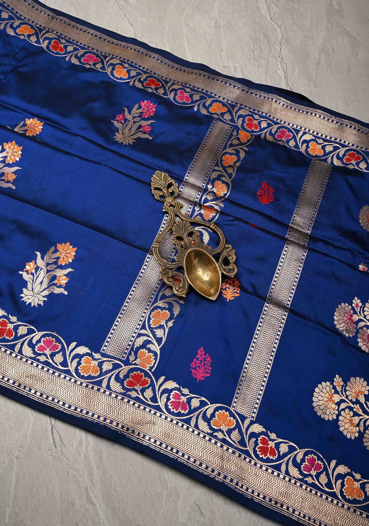 Exude royal elegance with this stunning Royal Blue Pure Banarasi Katan Silk Saree, a perfect blend of traditional craftsmanship and vibrant artistry. Woven from pure Katan silk, known for its rich texture and lustrous sheen, this saree drapes gracefully, elevating your presence at any occasion.