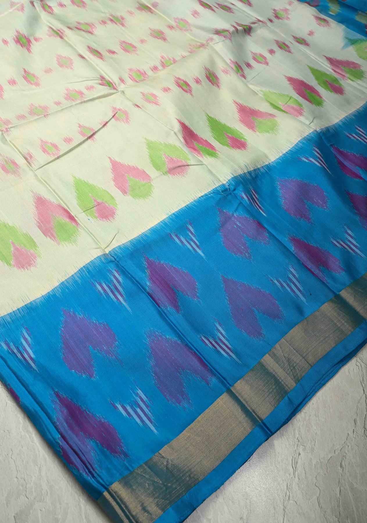 The Ivory–Blue Handloom Pure Mulberry Silk Saree is a timeless blend of elegance and traditional craftsmanship. Handwoven from pure mulberry silk, this saree features a soft ivory base beautifully complemented by serene blue accents. The panel-style design adds structure and modern refinement to the drape, while the muted zari border lends a subtle touch of classic charm. Lightweight, graceful, and versatile, this saree is perfect for weddings, festive occasions, and elegant cultural gatherings.