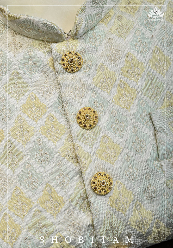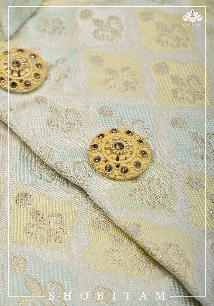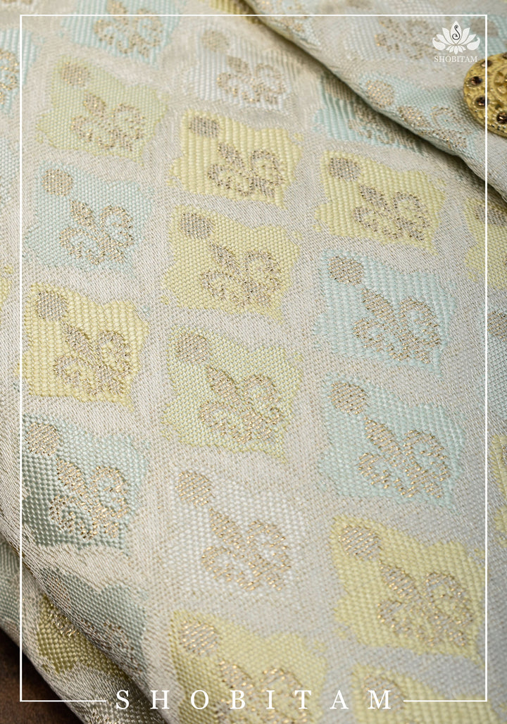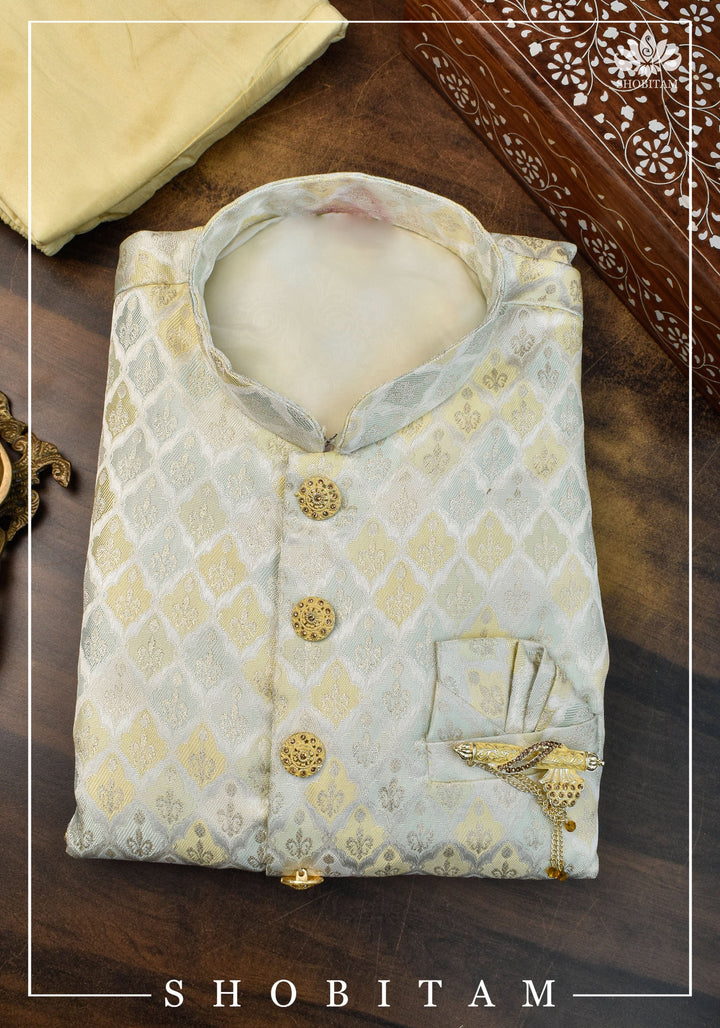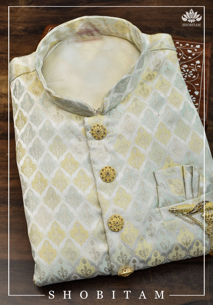 Item: Waistcoat for Men in Beige with Pastel Brocade and Cream Pajama