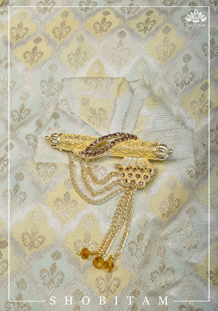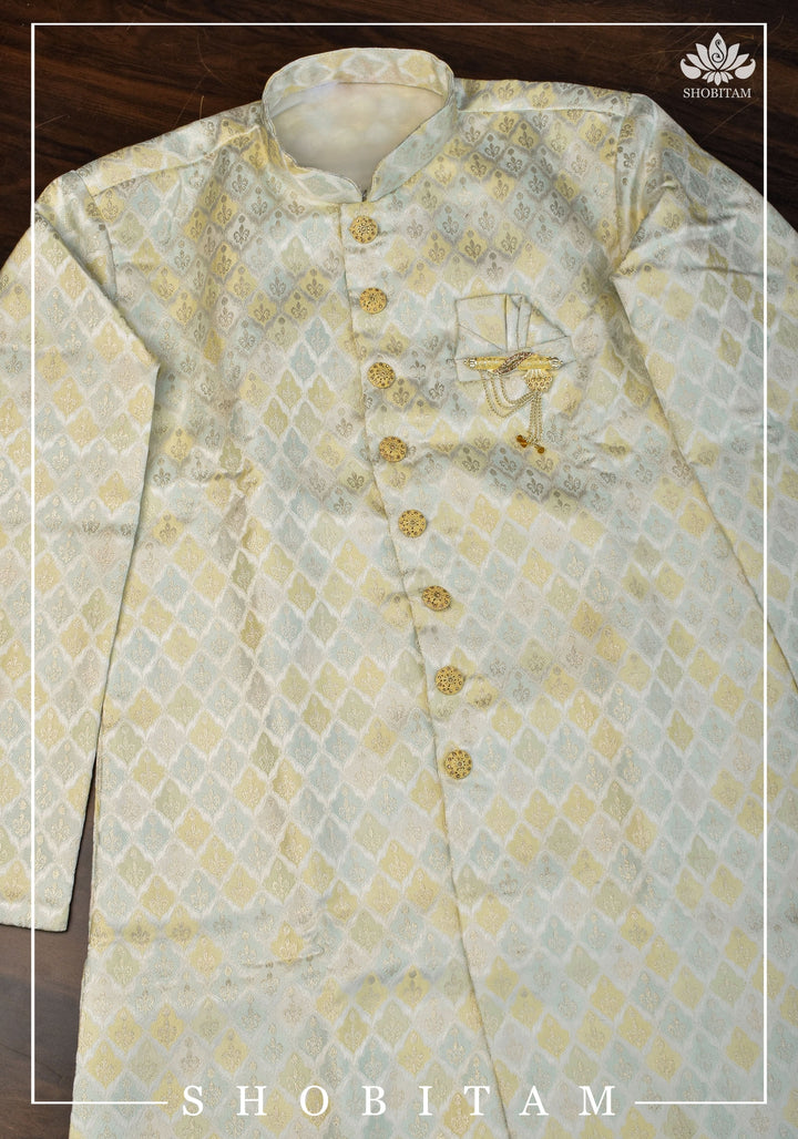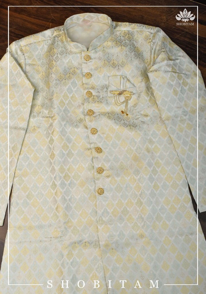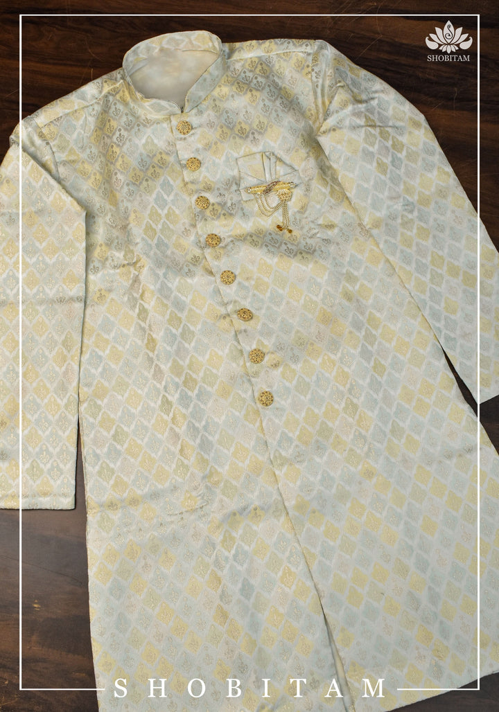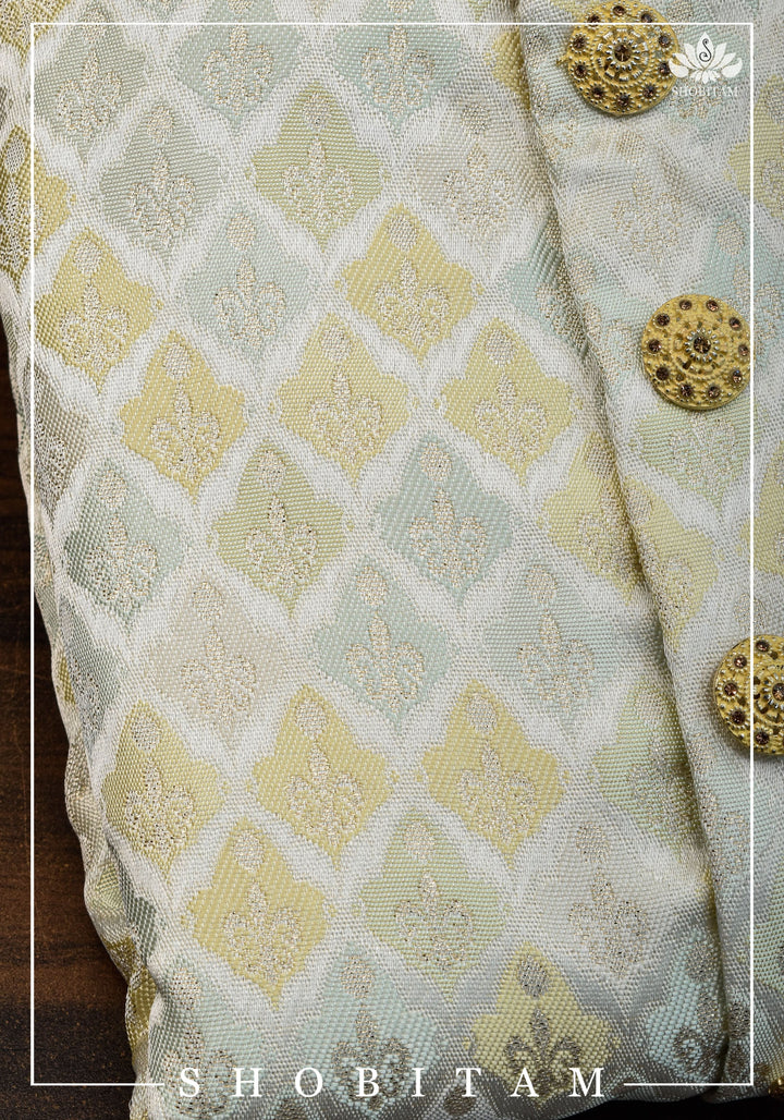 Item: Waistcoat for Men in Beige with Pastel Brocade and Cream Pajama