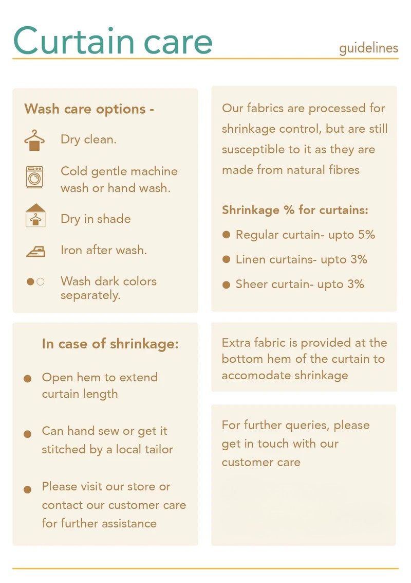 Fabric Treatment: Pre-washed and shrinkage controlled, with a maximum shrinkage tolerance of 3%. An additional 10% fabric is provided to accommodate any shrinkage