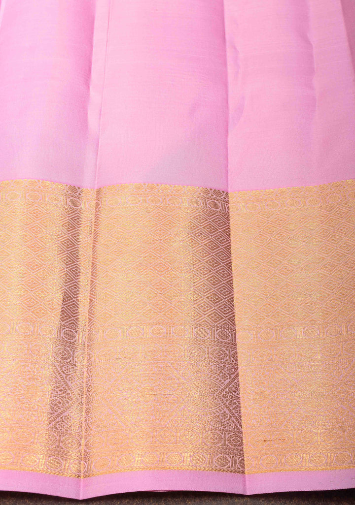 The saree is adorned with bold zari horizontal stripes, intricately woven with gold or silver zari threads, adding depth and texture to the fabric. The contrast zari border, with its fine detailing, enhances the saree’s overall appeal, adding a touch of opulence and grandeur. Ideal for those who appreciate the fusion of classic Kanjivaram silk with modern design elements, this saree is a statement piece that combines elegance, tradition, and luxury seamlessly.